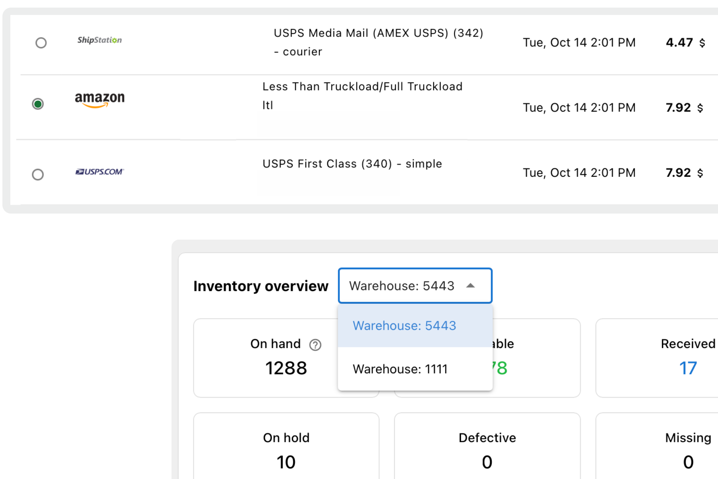 Control stock across all channels with real-time updates. Manage batches and expiration dates, follow marketplace compliance rules, create bundles/kits, and optimize inventory levels based on sell-through and demand trends.